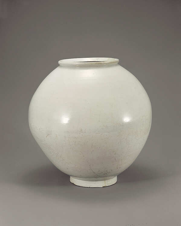 달항아리의 미학은 바로 이 불완전함에서 나온다. 위아래를 따로 만들어 붙였기에 생긴 비대칭적인 형태와, 사람의 손길이 느껴지는 부드러운 곡선은 편안함을 준다. 유약 또한 완전한 순백이 아닌, 엷은 회색이나 우윳빛이 감도는 따뜻한 색감을 띤다. 이는 보는 이로 하여금 안정감을 느끼게 한다. 특별한 문양이나 화려한 장식이 없음에도 불구하고, 그 자체의 형태와 색감, 그리고 넉넉한 부피감만으로 꽉 찬 충만감을 선사한다. 이는 인위적인 기교를 배제하고 사물의 본질을 추구했던 조선 사대부의 미의식과도 맞닿아 있다. 달항아리는 본래 감상을 위한 예술품이 아니라, 왕실과 일부 사대부 집안에서 식재료 등을 담기 위해 항아리로써 사용되었다. 그러나 그 꾸밈없고 자연스러운 아름다움은 20세기에 들어와 화가 김환기 등에 의해 재발견되었고, 현재는 조선백자의 고유한 미학을 가장 잘 대표하는 작품으로 평가받고 있다.